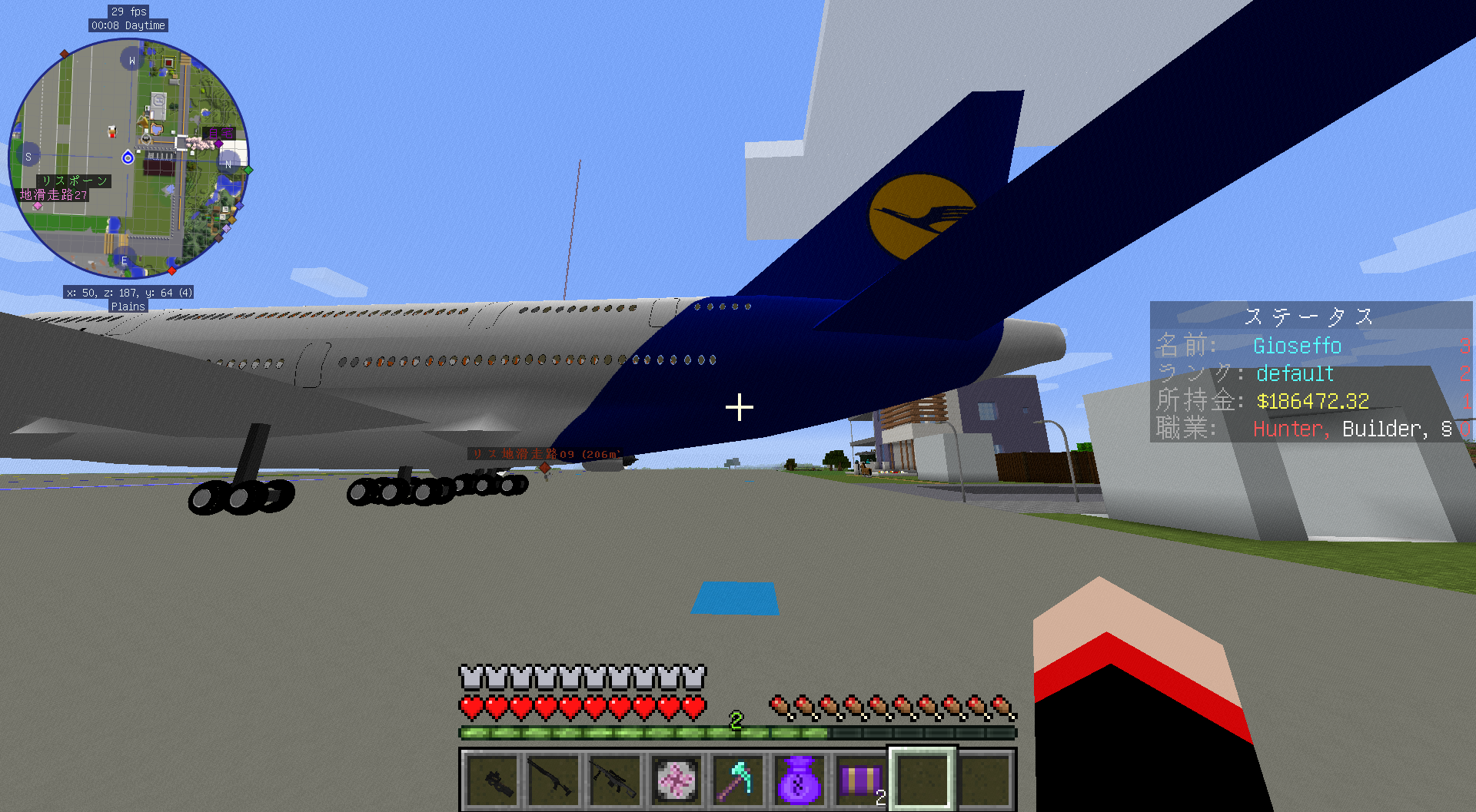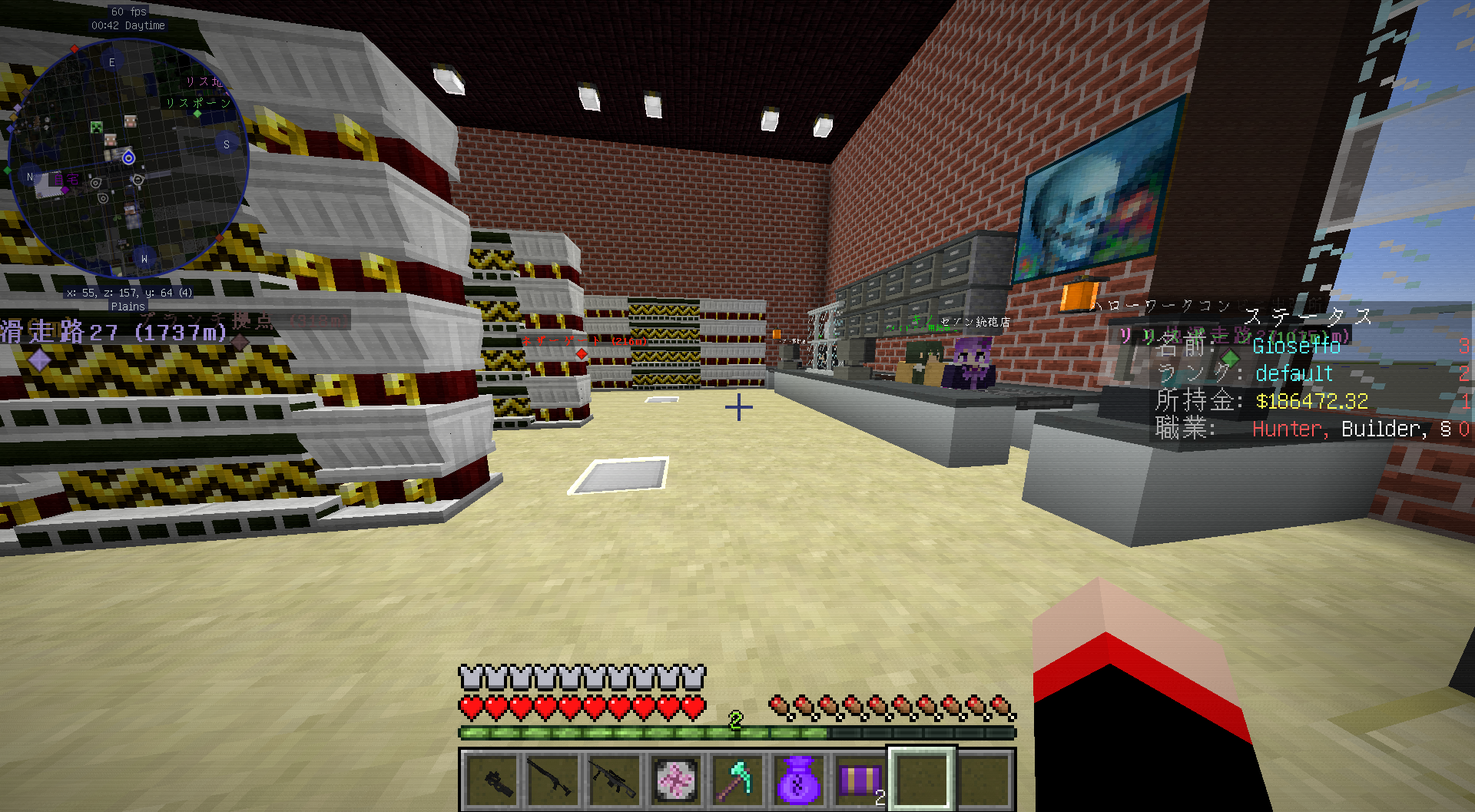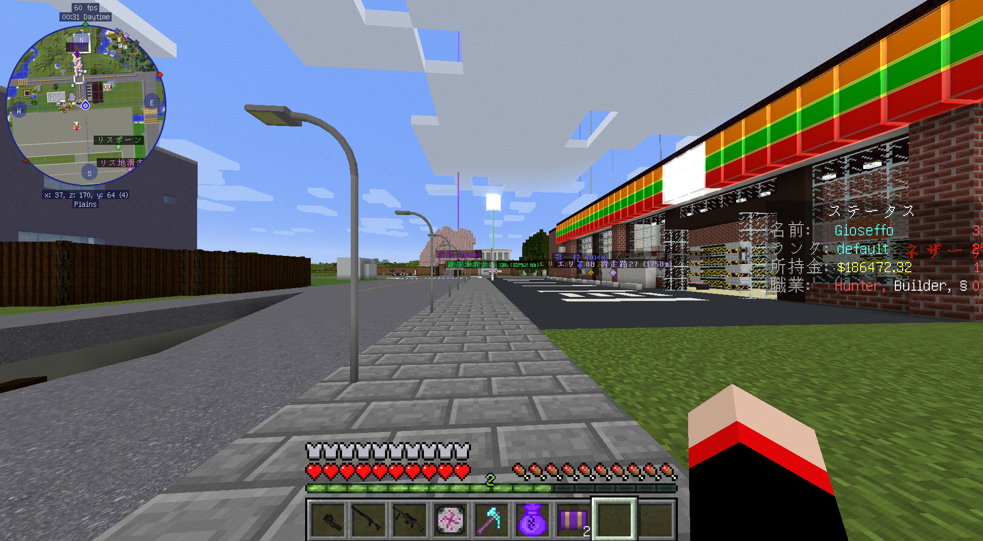通貨はドルです。(経済プラグイン自体は色々変更可能なものの、NPC商店や職業プラグインがドル固定のため。)