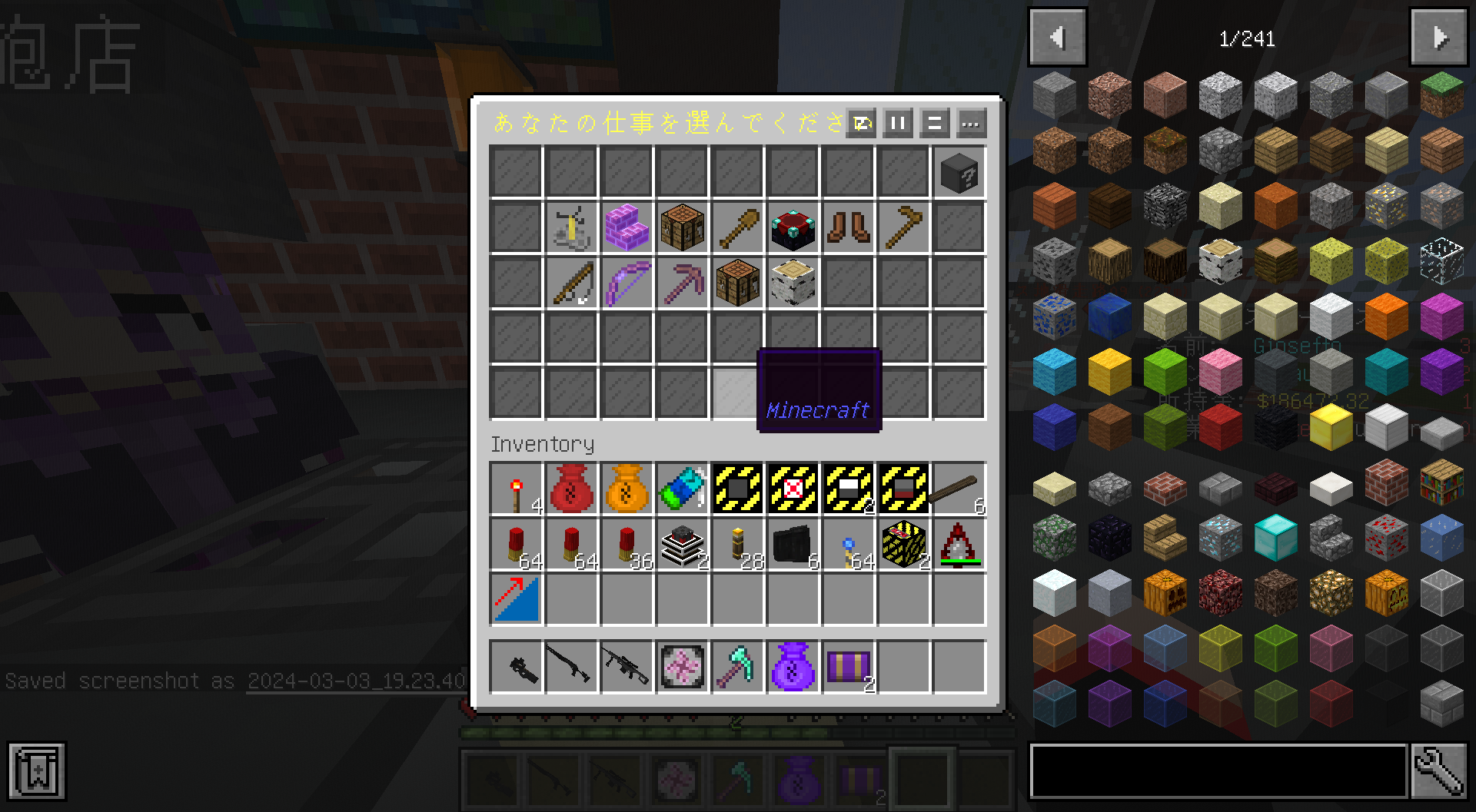 ハローワークコンビニ出張所に話しかける(右クリックする)と、職業選択画面になります。